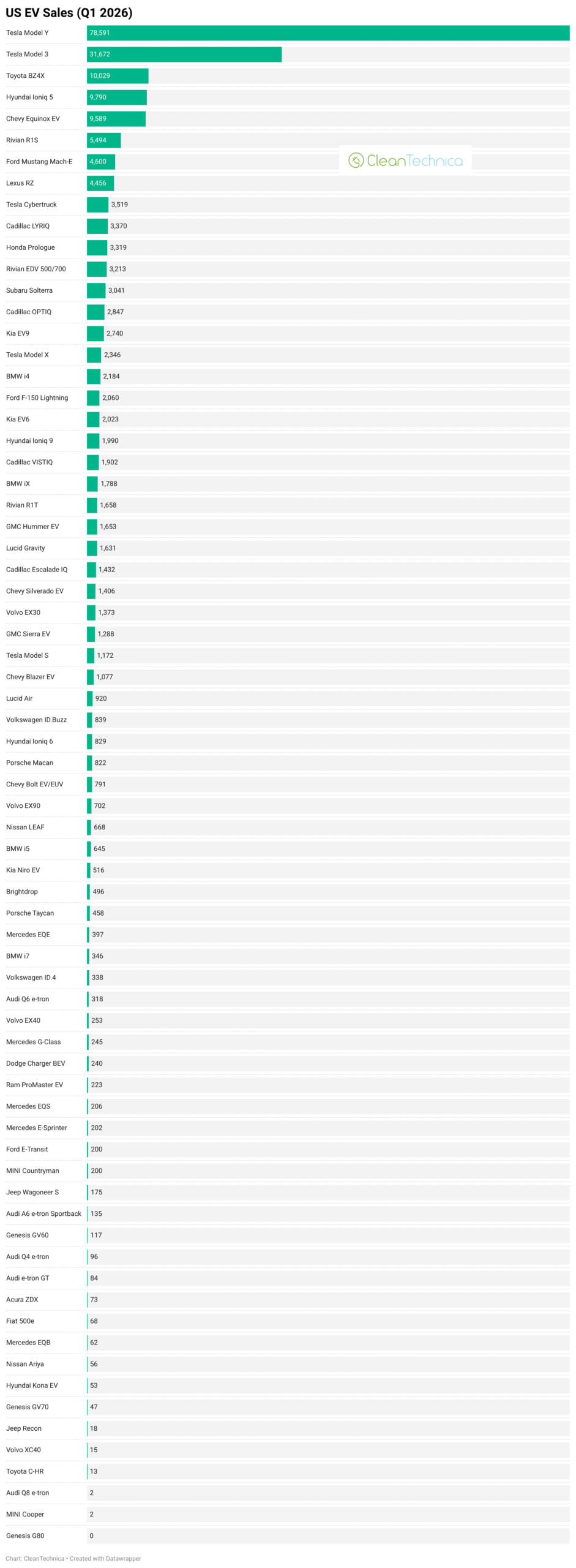 So, which EV fashions are main this new market? That’s nonetheless very closely the Tesla Mannequin Y and Tesla Mannequin 3. The Toyota bZ (beforehand bZ4X) is the large shock at #3, adopted by the equally spectacular Hyundai IONIQ 5 and Chevrolet Equinox EV. After that, there’s a big dropoff.